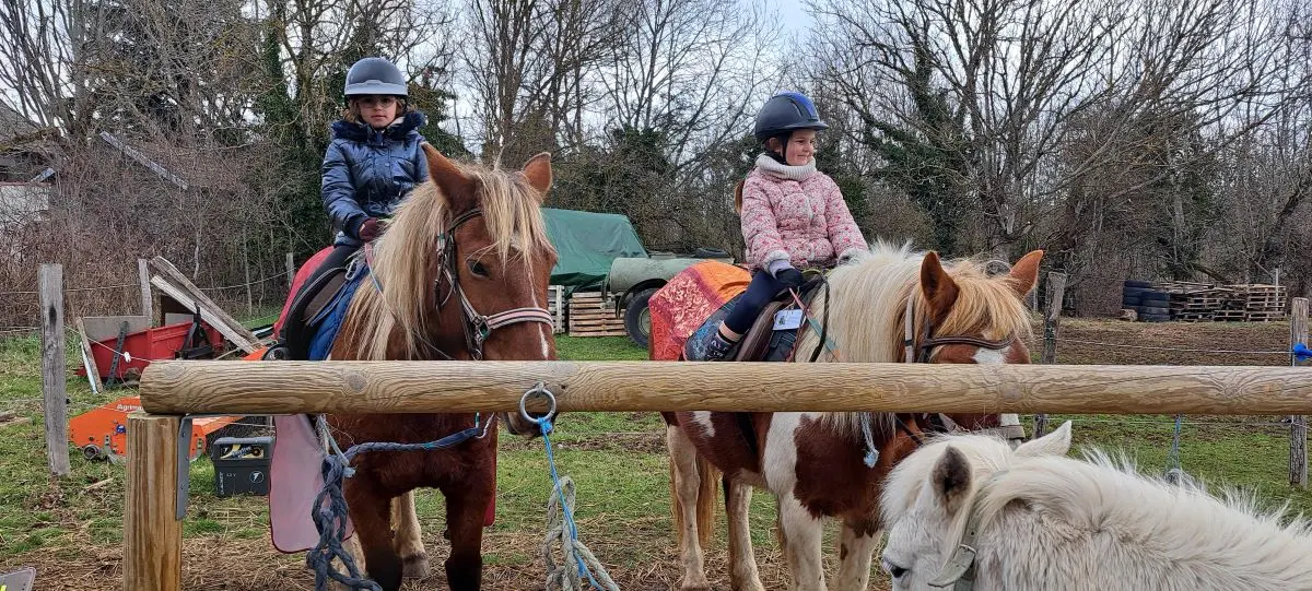 Une animation qui familiarise les enfants débutants ou confirmés au contact du poney ou cheval : pansage, décoration, harnachement... La monture, calme et tranquille, est tenue en main par l'accompagnant et Claire propose tout le long de la balade des petits défis pour découvrir son équilibre à cheval et quelques foulées de trot. Les enfants se prennent au jeu des indices. Souvent les plus craintifs ne veulent plus descendre de leur monture à l'arrivée !