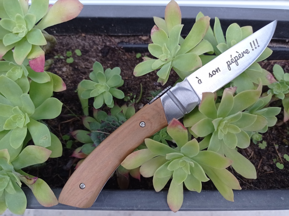 Atelier de gravure au laser sur un couteau, avec votre prénom ou le texte de votre choix.