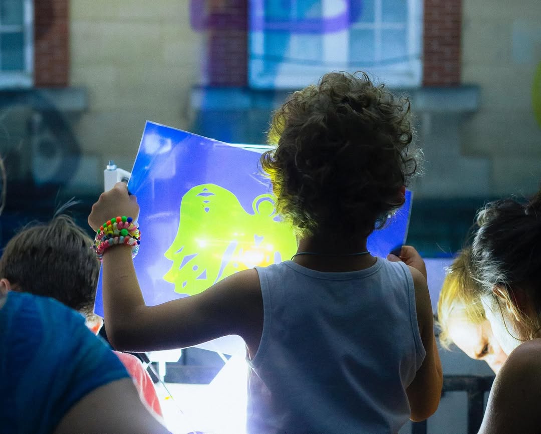 Lors de ces ateliers de médiations, les participants peuvent dessiner sur des calques transparents, puis voir leurs créations projetées en grand format. C’est une manière ludique et interactive de s’approprier le dispositif et de le comprendre en y participant. Les visuels créés pourront être utilisés lors de la performance du 22 novembre.