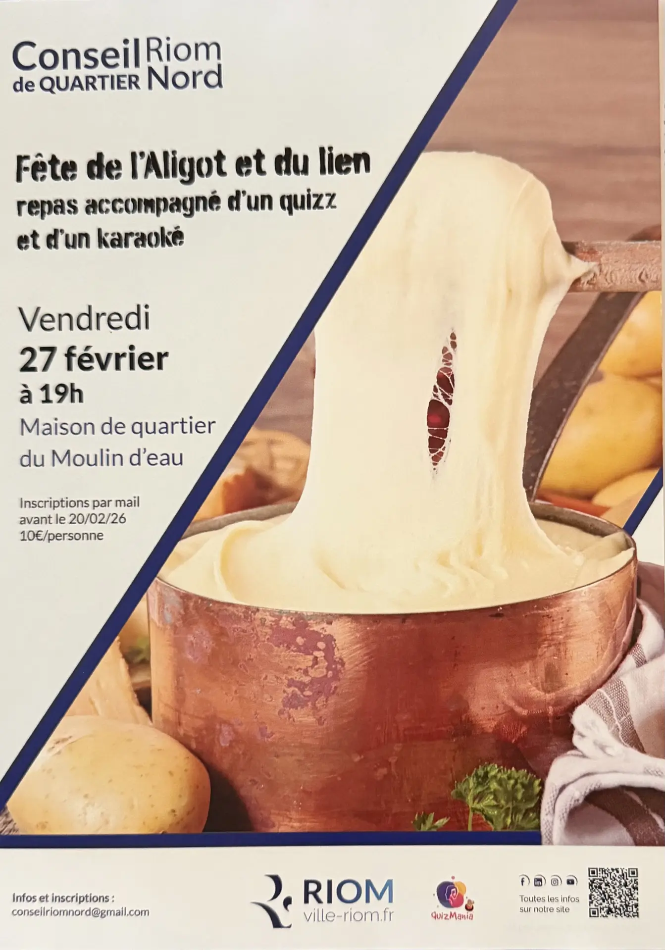 Aligot accompagné d’un quizz et d’un karaoké par le conseil de quartier de Riom nord.
