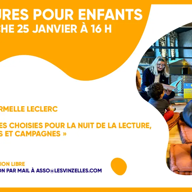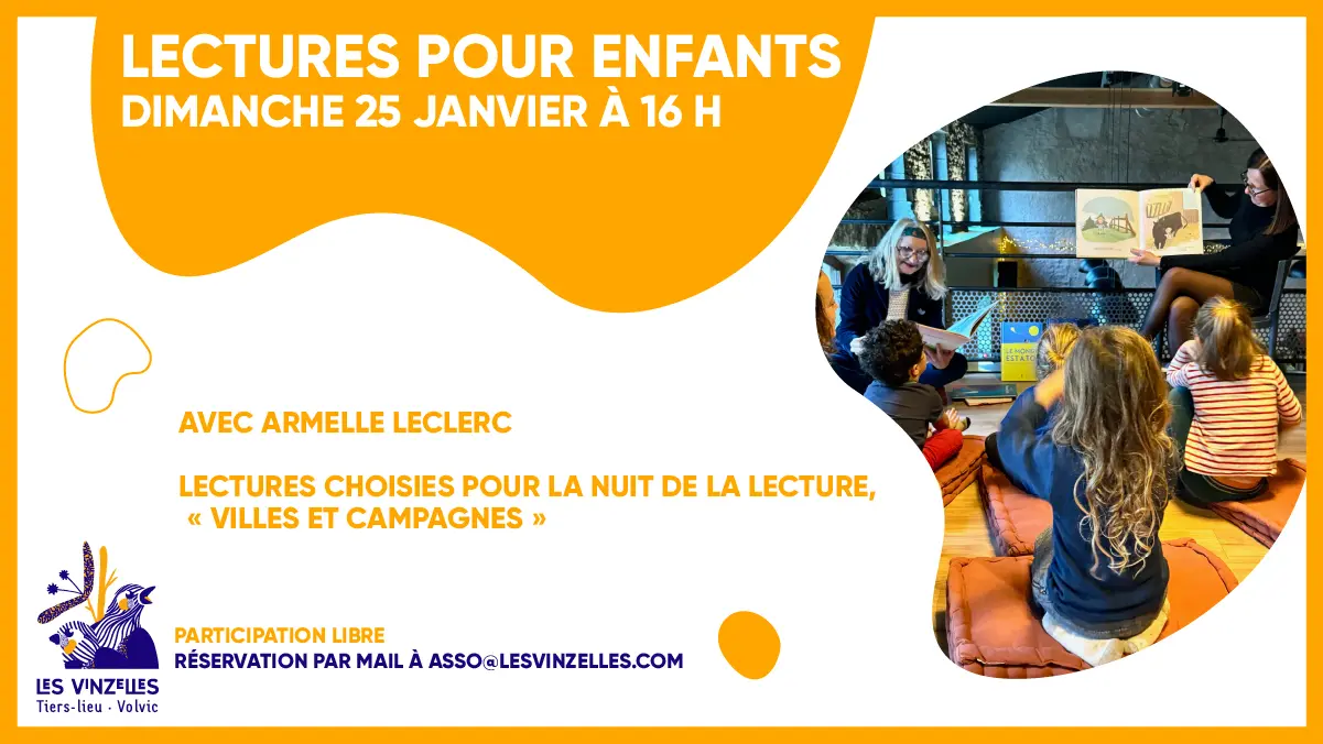 Nuit de la lecture « villes et campagnes » côté jeunesse avec Armelle Leclerc. Armelle, représentante passionnée dans la diffusion de littérature jeunesse depuis plus de vingt ans, lit quatre de ses coups de coeur aux enfants de 4 à 8 ans.