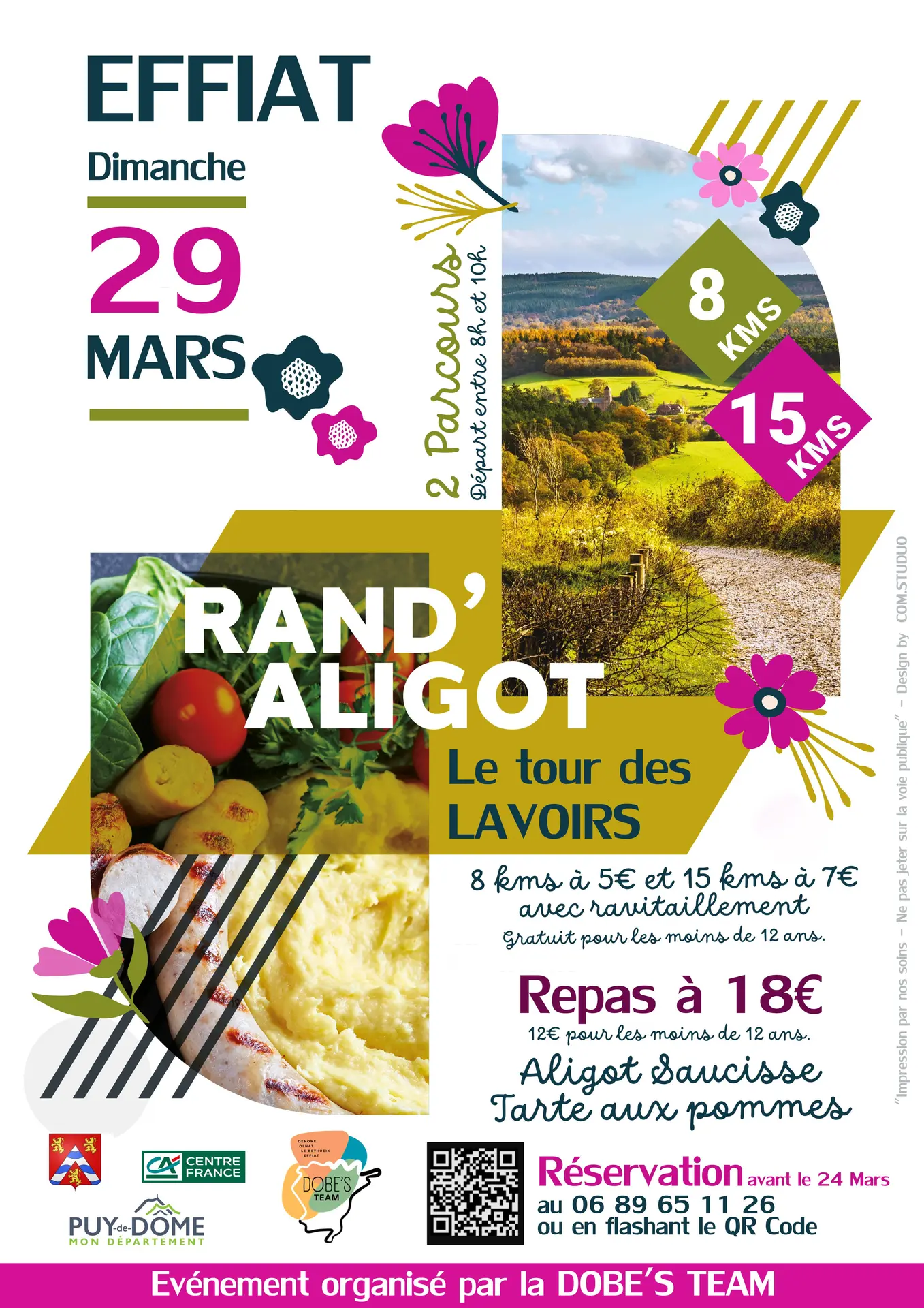 Deux parcours, un de 8km et un de 15 km autour des lavoirs. Vous pouvez, après le verre de l'arrivée, vous pouvez prolonger votre journée par un repas aligot saucisse, suivi d'une tarte aux pommes.