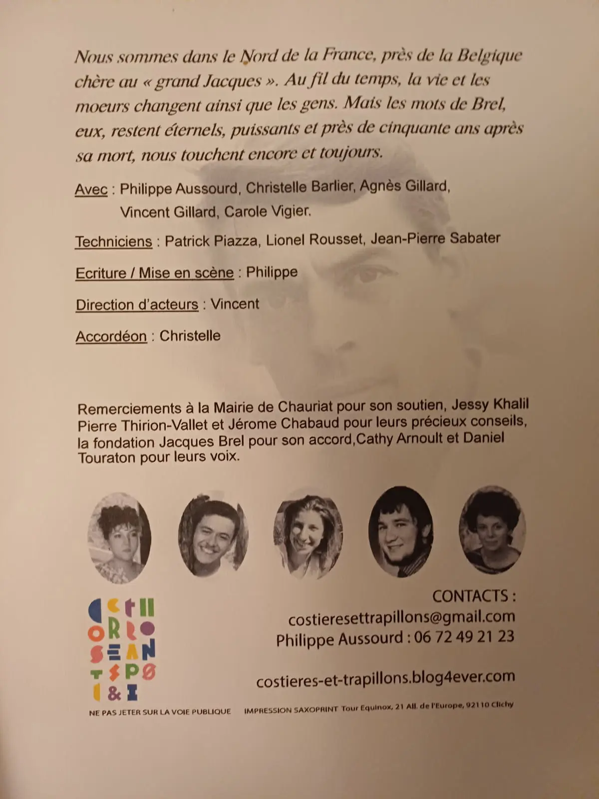"BREL A DIT" pièce jouée par la troupe THEATRE COSTIERES ET TRAPILLONS écrite et mise en scène par Philippe Aussourd
