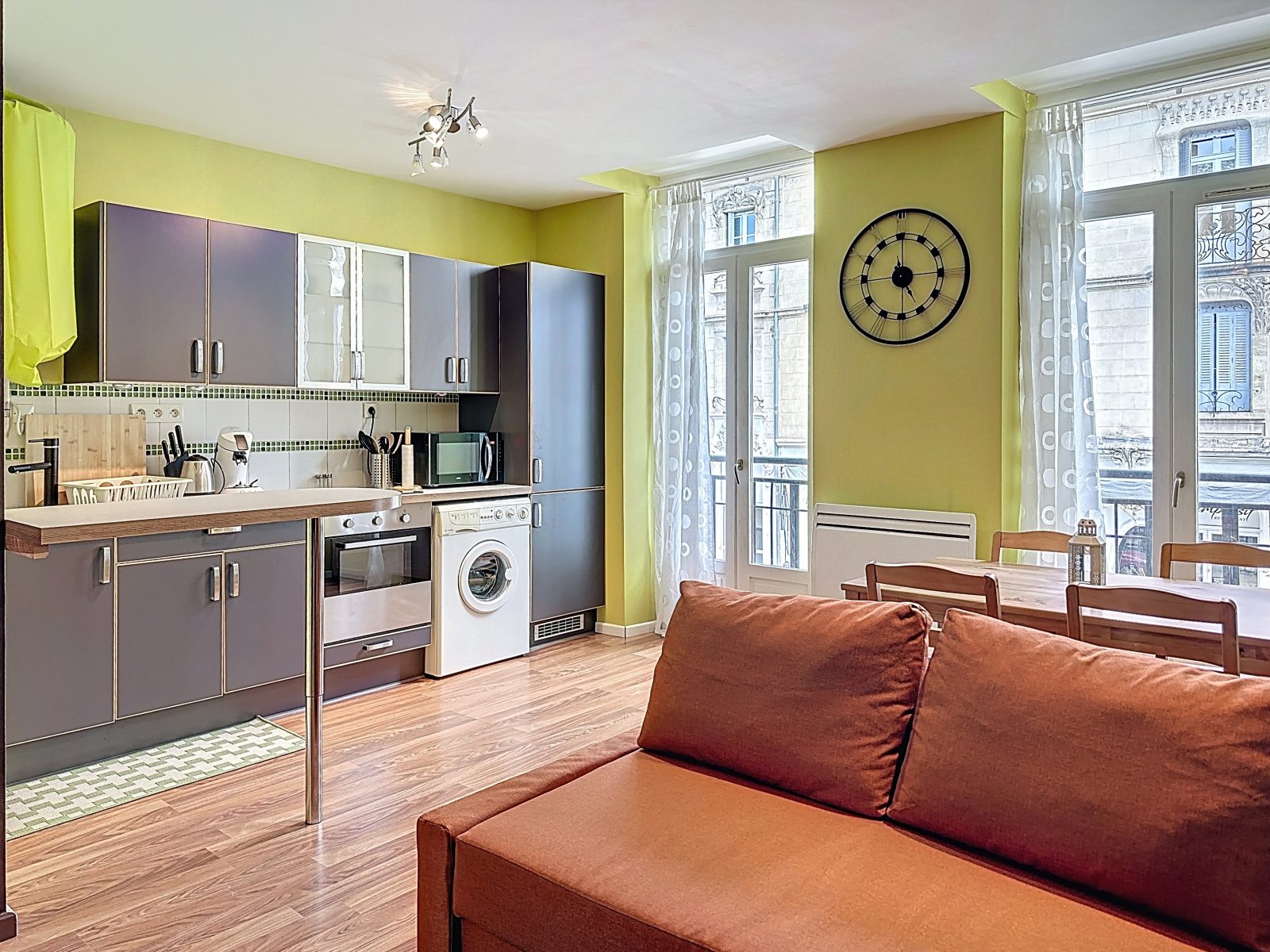 - un séjour avec cuisine ouverte et canapé convertible deux places