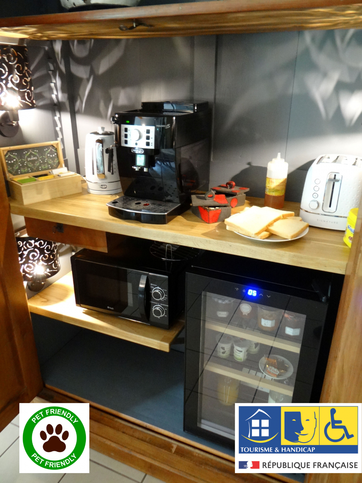 Studio 2 à 3 personnes en lits individuels. Cuisine équipée, séjour, salle d'eau/WC, terrasse. Accessible PMR. Location à partir d'une nuit.