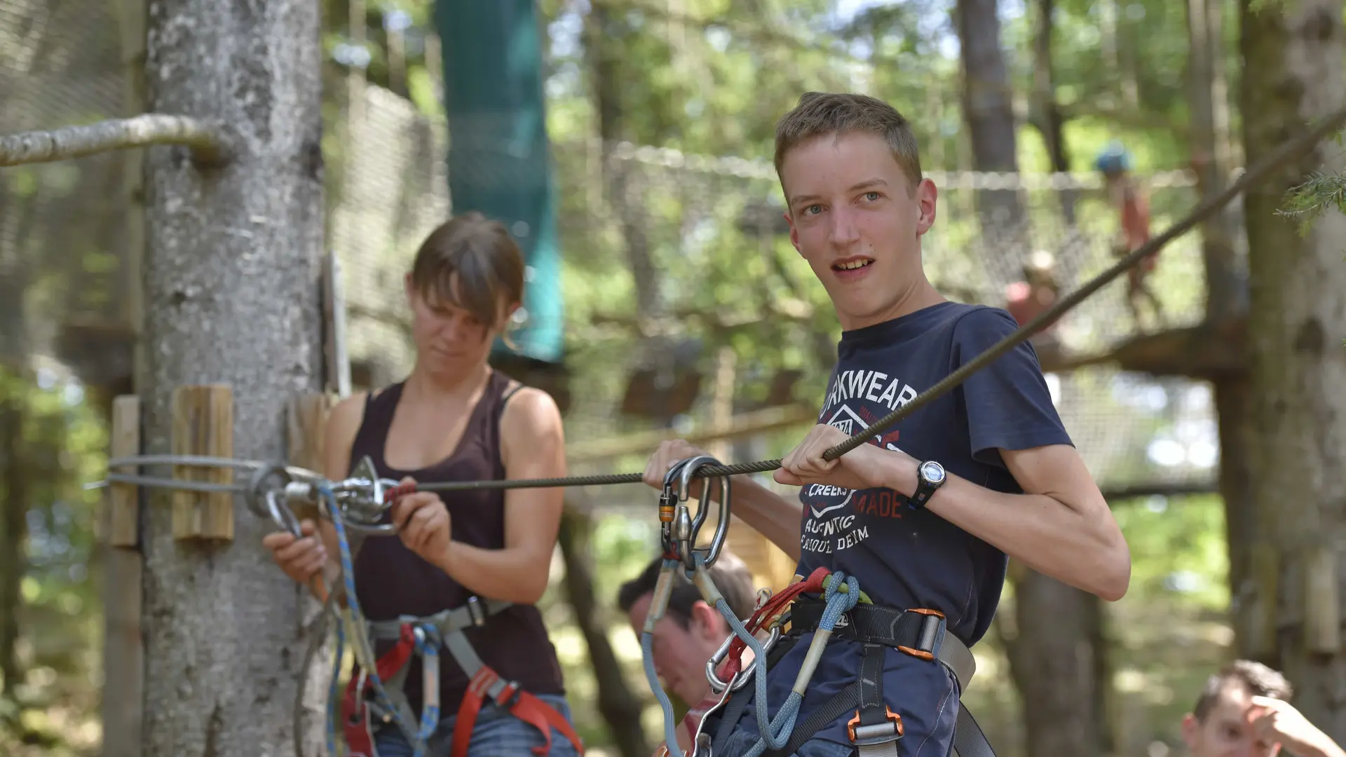 - Tous nos parcours enfants et adultes sont équipés de lignes de vie continues : système de sécurité maximum, vous n'avez plus à vous détacher tout au long du parcours.