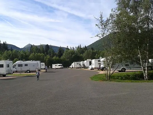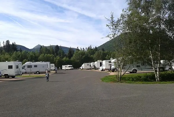 Un espace clos avec un point service comprenant borne de vidange, distribution d’eau, raccordement électrique (possible pour 20 véhicules).