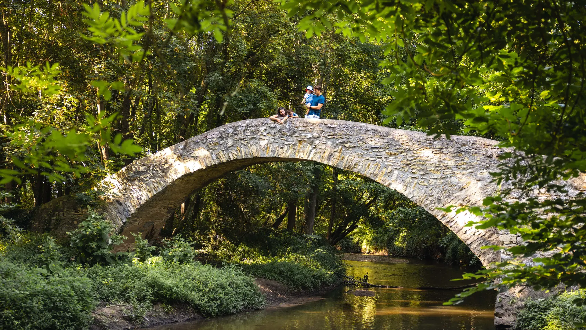 4/ Prendre à droite à l’intersection, (possibilité de faire un aller-retour sur le chemin de gauche pour aller jusqu’au pont romain à 50 m). À la sortie du