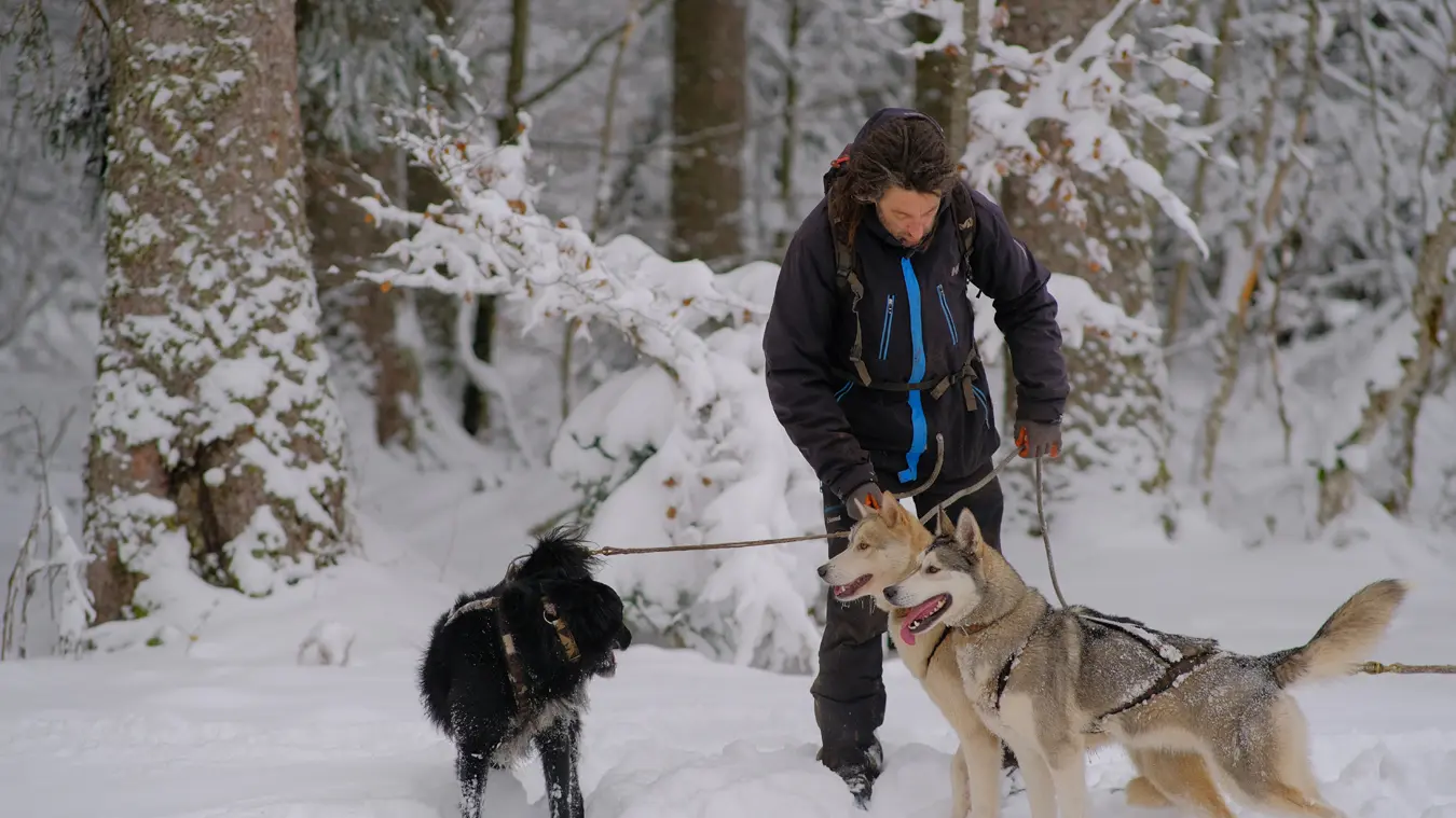 Julien, musher diplômé depuis 2015 et sa meute sont là pour vous accueillir en traîneau, cani-kart ou cani-marche.
