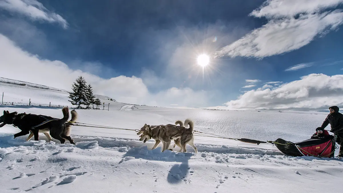 A la manière des inuits, lorsqu’ils partaient à la chasse, votre musher vous emmène, un chien relié à un baudrier, hors des sentiers battus à la découverte de nos belles terres auvergnates.
