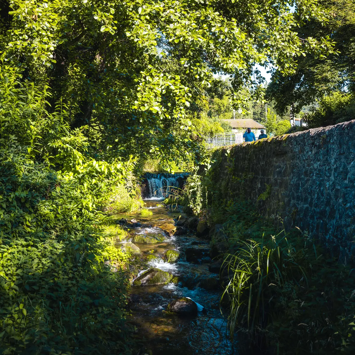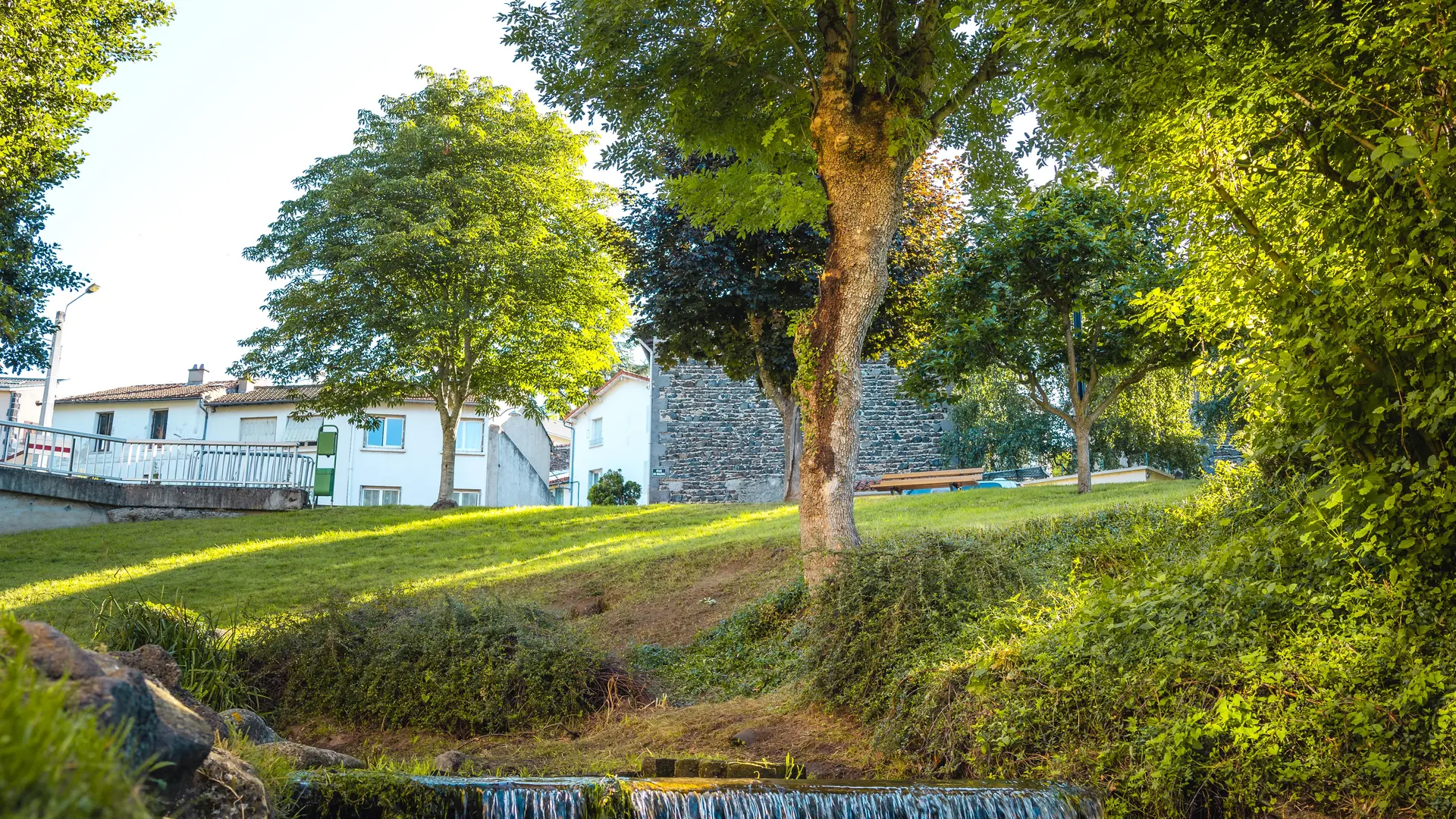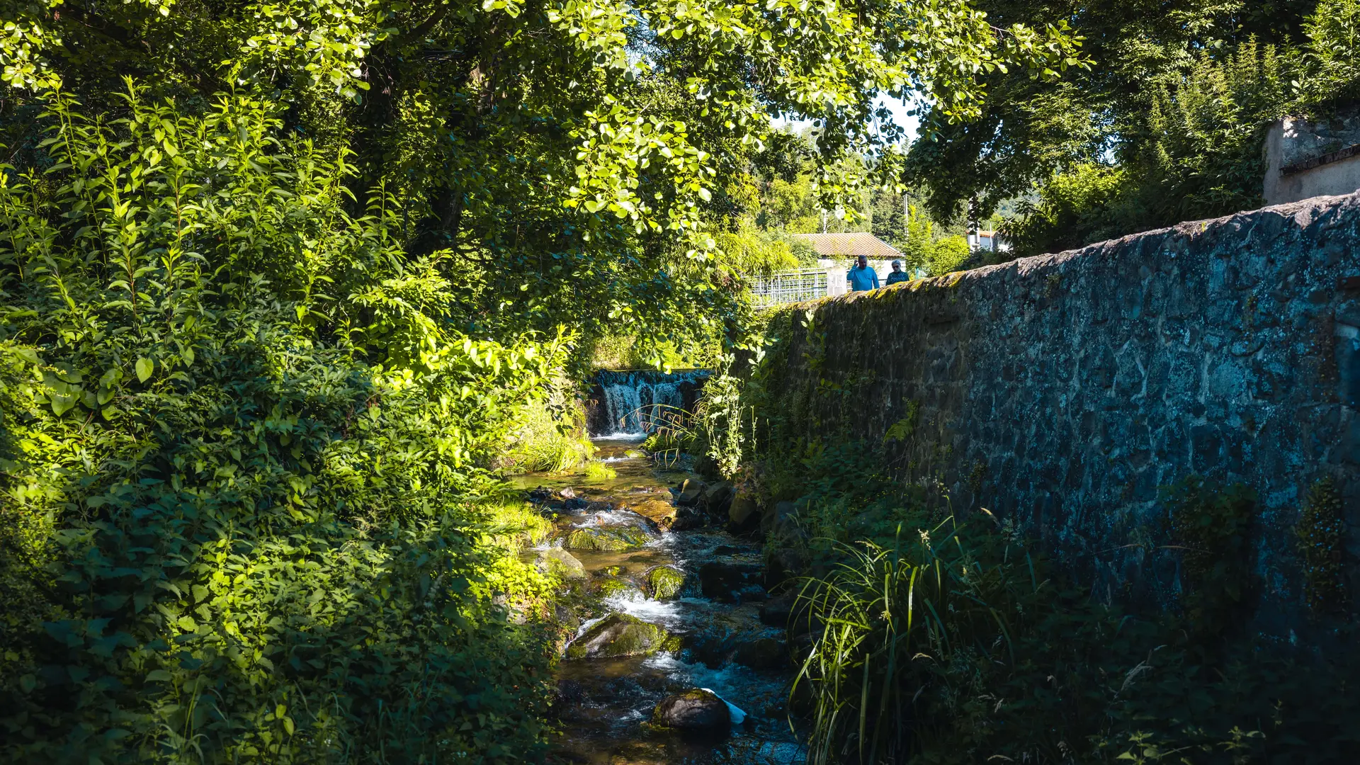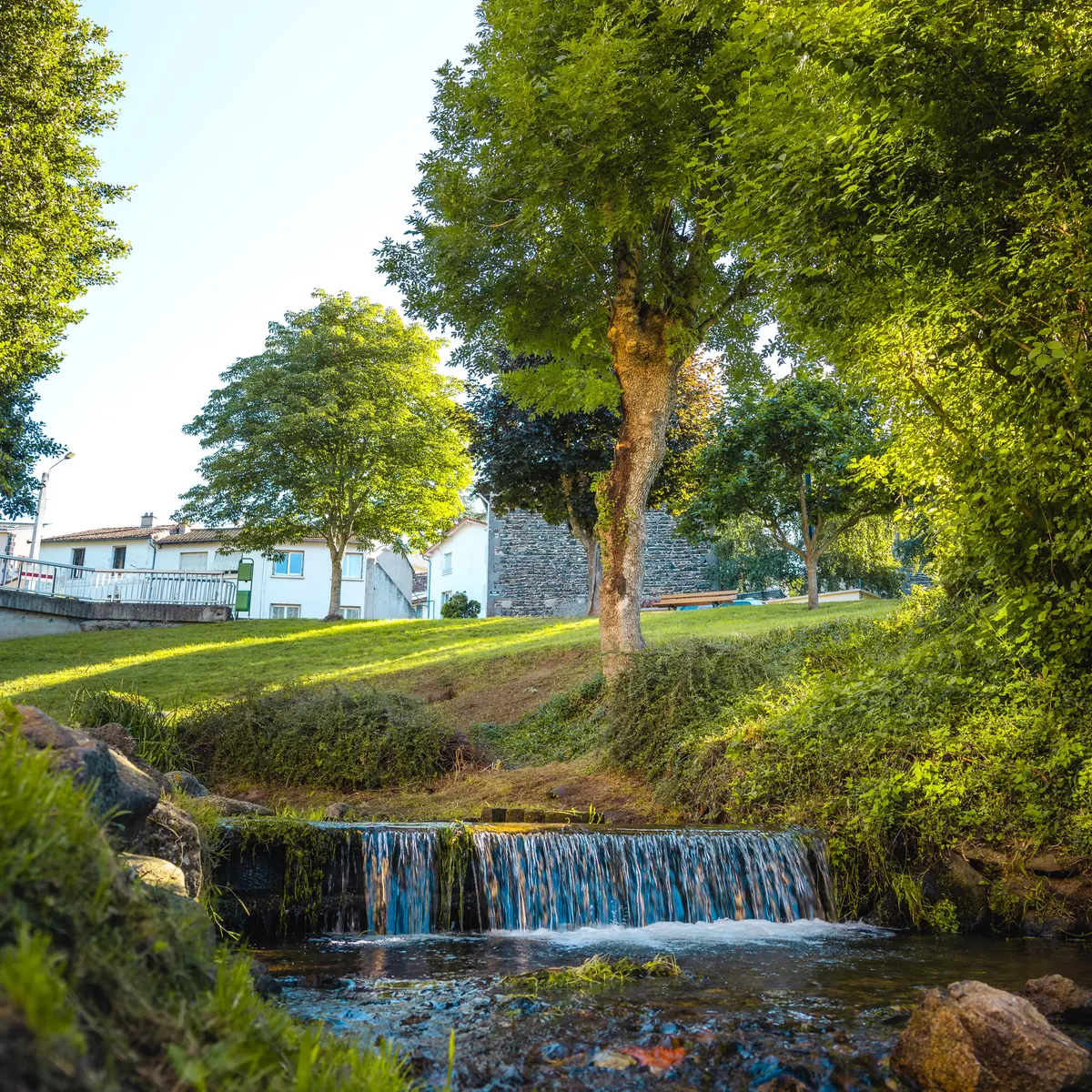 1/ Départ: Monter la rue en direction de la fromagerie Dischamp. Sur la place, contourner l’usine par la gauche en longeant la rivière (Le Bédat). Rejoindre la route puis prendre à gauche jusqu’au carrefour. Traverser la route et longer la maroquinerie. Passer le château de Féligonde puis prendre le chemin à droite.