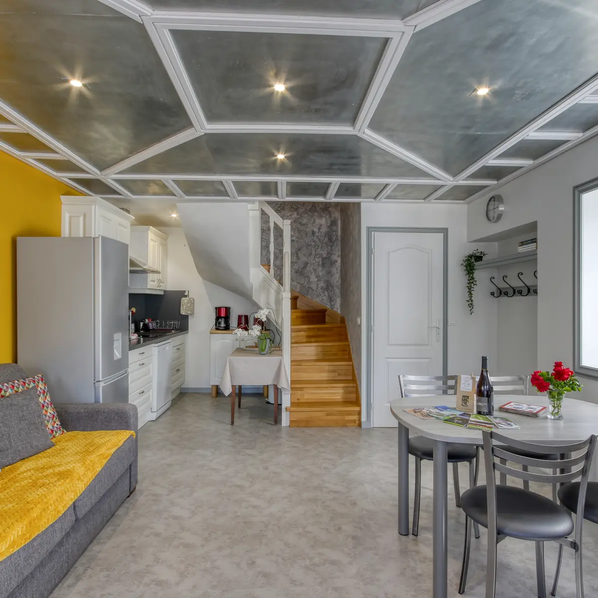 Dans un cadre naturel privilégié, au pied des volcans d'Auvergne, face au château de Tournoël et dominant le village de Volvic, la plaine de Limagne et les monts du Livradois et du Forez, ressourcez vous dans ce duplex de charme tout confort. Cuisine équipée, literie haut de gamme Biotex (160 X 200), lit fait à votre arrivée, linge de toilette fourni. Prenez vos repas en terrasse et depuis la chambre profitez d’une vue imprenable sur le château.