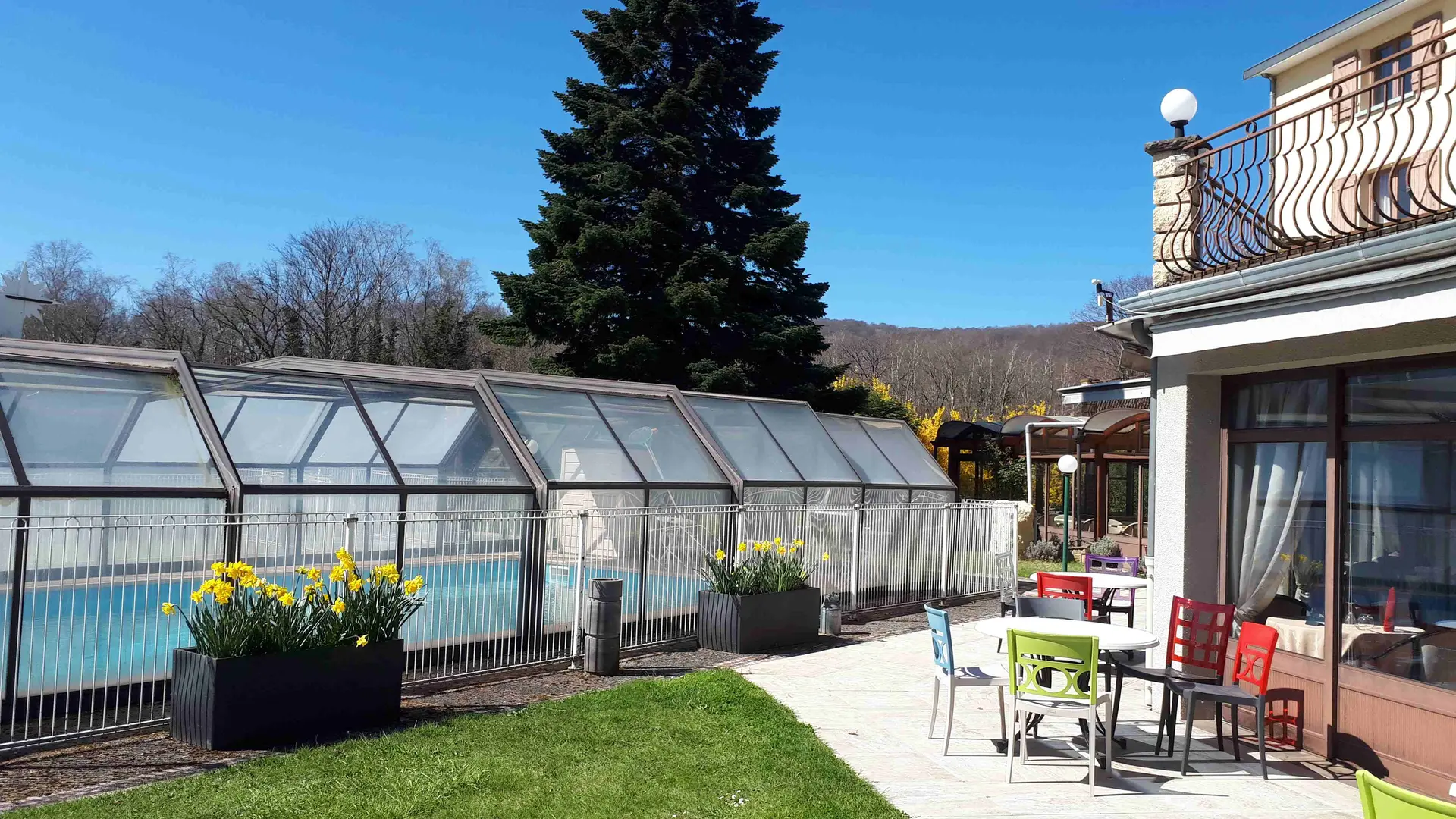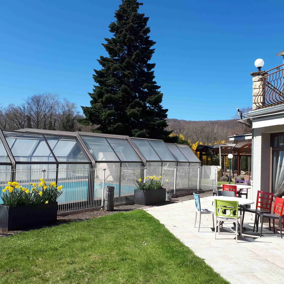 Situé à 755 mètres d'altitude, entre la Plaine de la Limagne et la Chaîne des Puys, l' emplacement est idéal pour se ressourcer et rayonner dans le Parc Naturel Régional des Volcans d'Auvergne. L'hôtel dispose d'une piscine et d' un solarium, et permet un accès immédiat à une multitude d'activités touristiques et sportives.