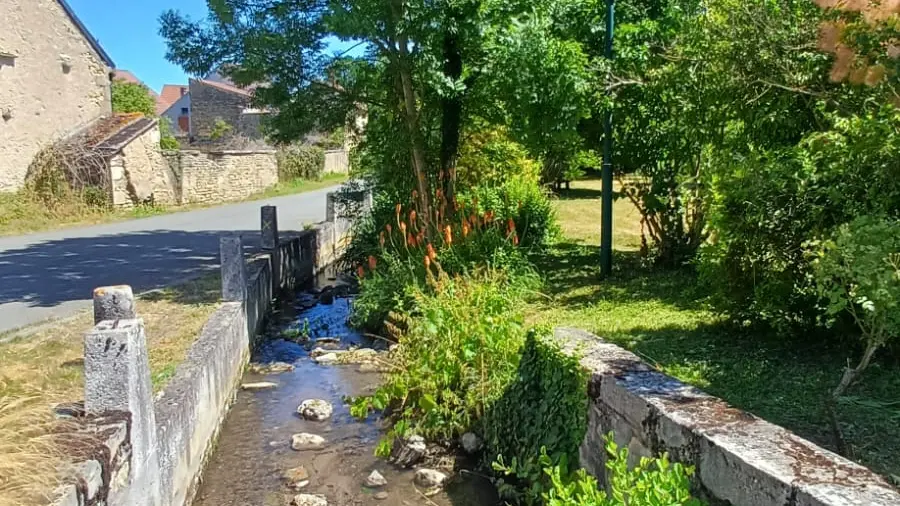 1/ Départ Ecole. En sortant du parking, suivre à gauche l’allée arborée. Au bout de celle-ci, tourner à droite et passer devant la mairie. Au rond-point, poursuivre en face, franchir le pont et passer devant l’église puis devant le château du 15e siècle et longer le cimetière.