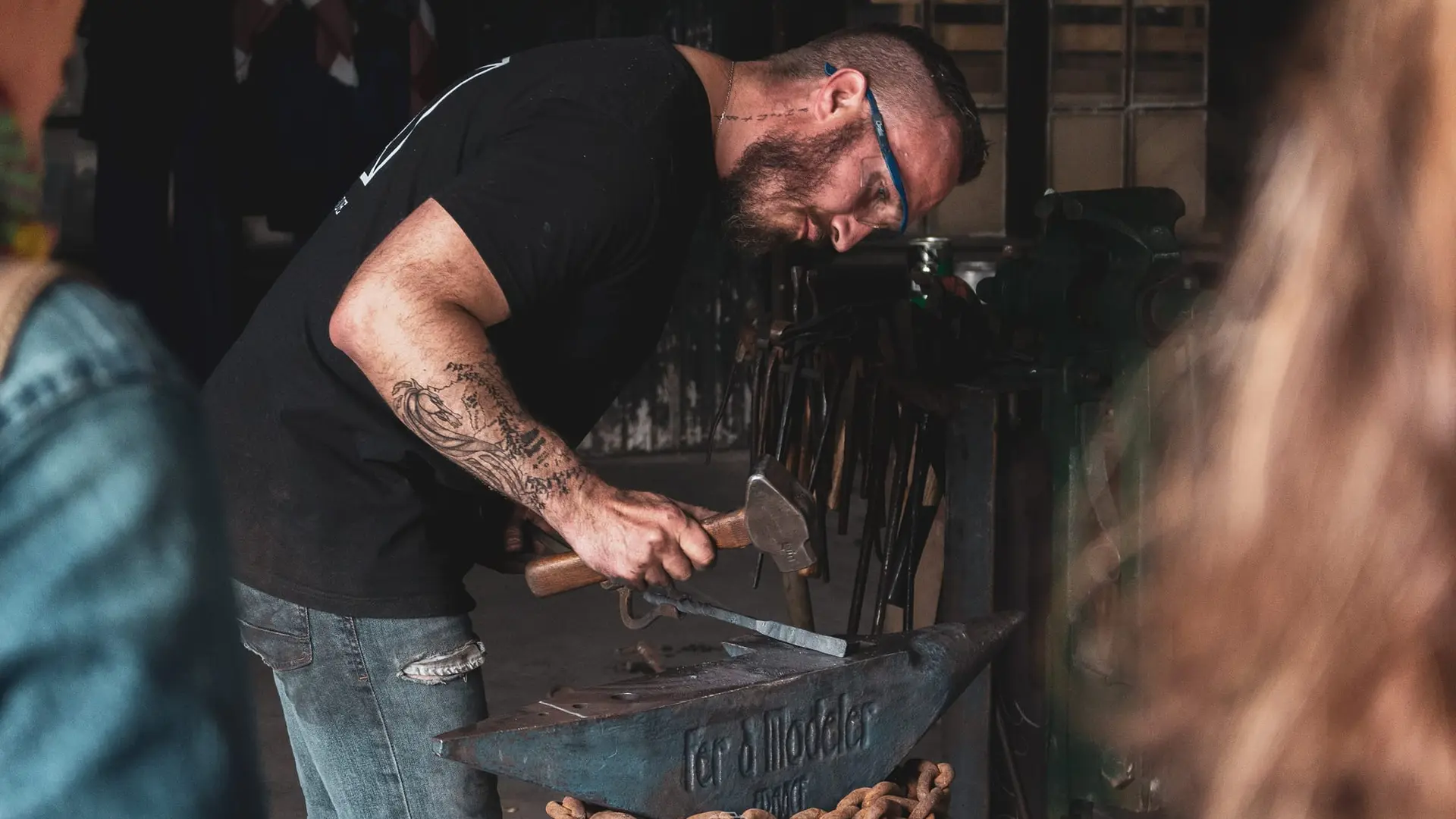 Bonjour, aux forges de Volvic vous pourrez découvrir la création d'objet sorti tout droit de la forge et travaillé au marteau et l'enclume. Couteaux et bijoux avec des aciers différents comme le damassé.
