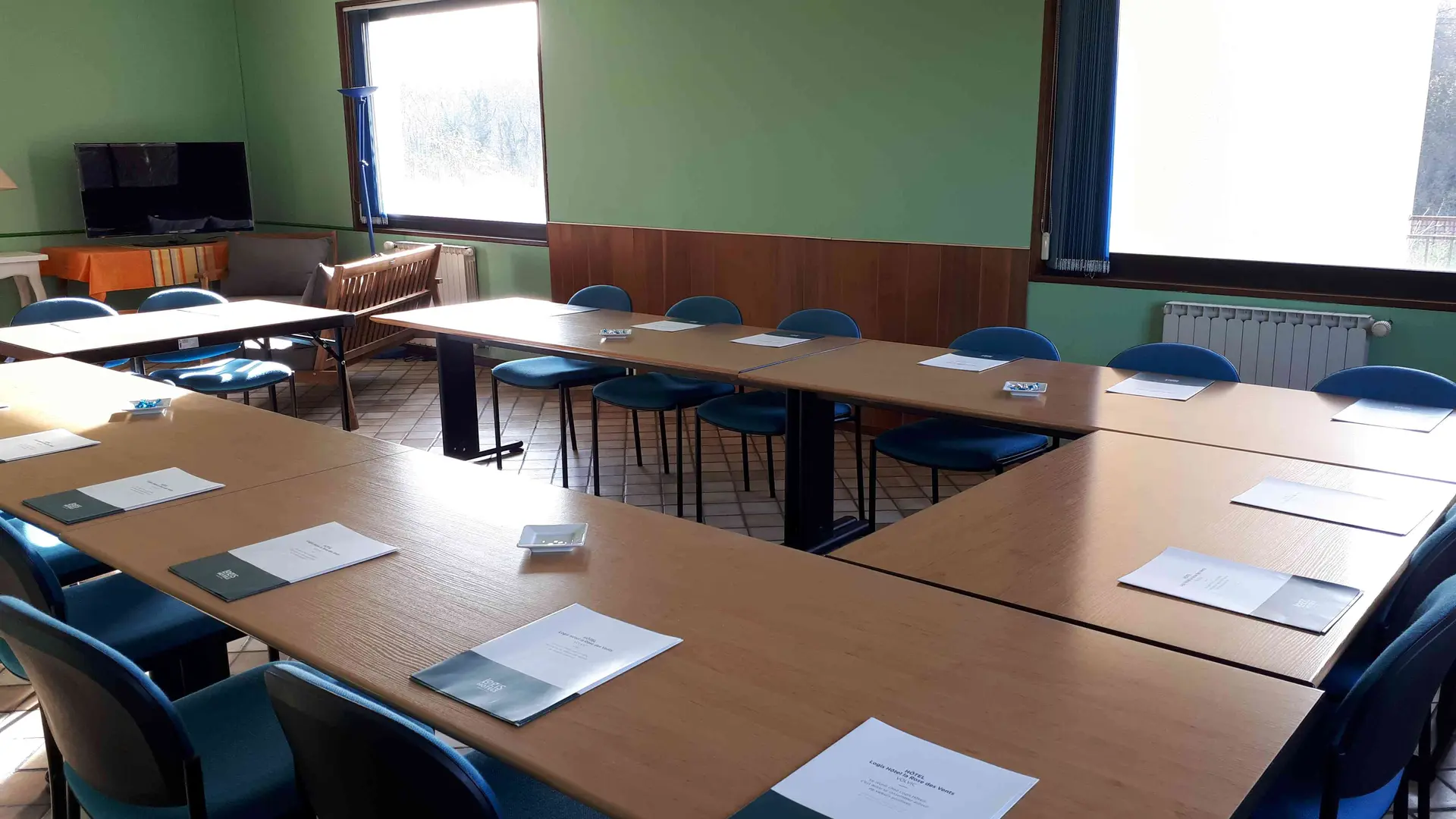 Salle Pariou : configuration possible en îlots, en théâtre ou en U, 30 personnes, 50 m². Cette salle peut accueillir des repas ou réunions.