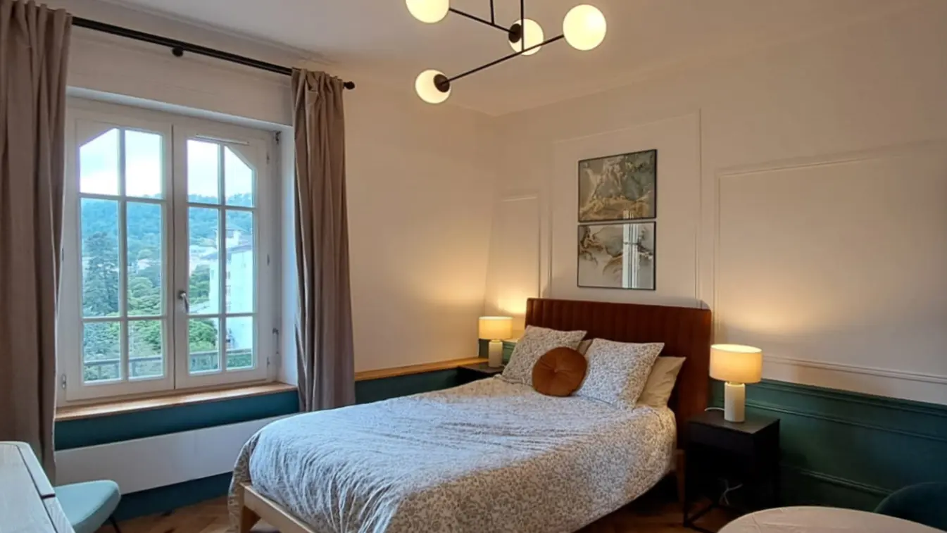 Idéalement placé au centre de Châtel-Guyon, vous profiterez de la proximité immédiate de tous les commerces (restaurants, boutiques de souvenirs, pharmacie, marché), divertissements (casino, théâtre) et serez à 3 minute à pieds des nouveaux Thermes. Posez vos valises dans ce magnifique immeuble de style Art déco construit en 1930 dont le charme a inspiré la rénovation de cet appartement avec sa belle hauteur sous plafonds mise en valeur par ses moulures et son pan de boiseries d’origine tout en y alliant le confort moderne pour que votre séjour soit des plus agréable.