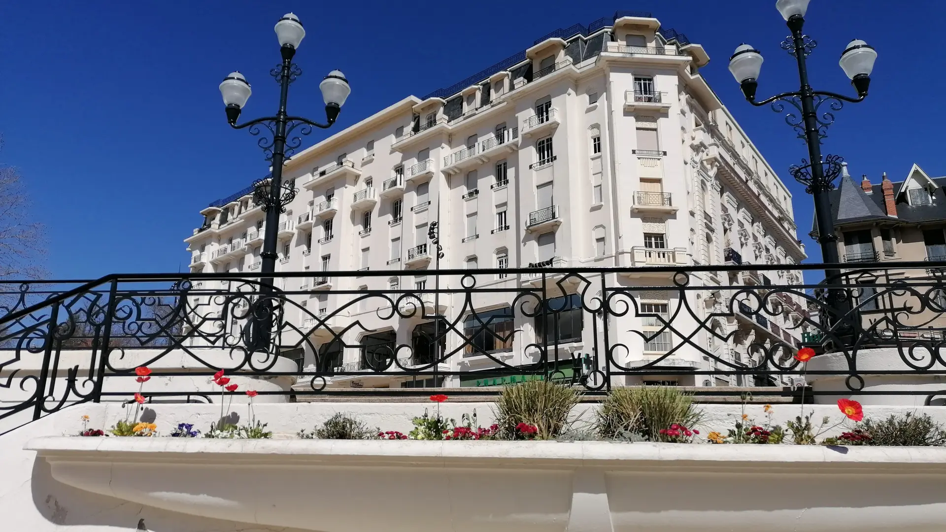 Appartement de 27 m² pour 1 ou 2 personnes situé au 3ème étage dans une résidence de 5 étages avec ascenseur. Le Grand Hôtel, face au parc thermal, en centre ville, proche tous commerces.