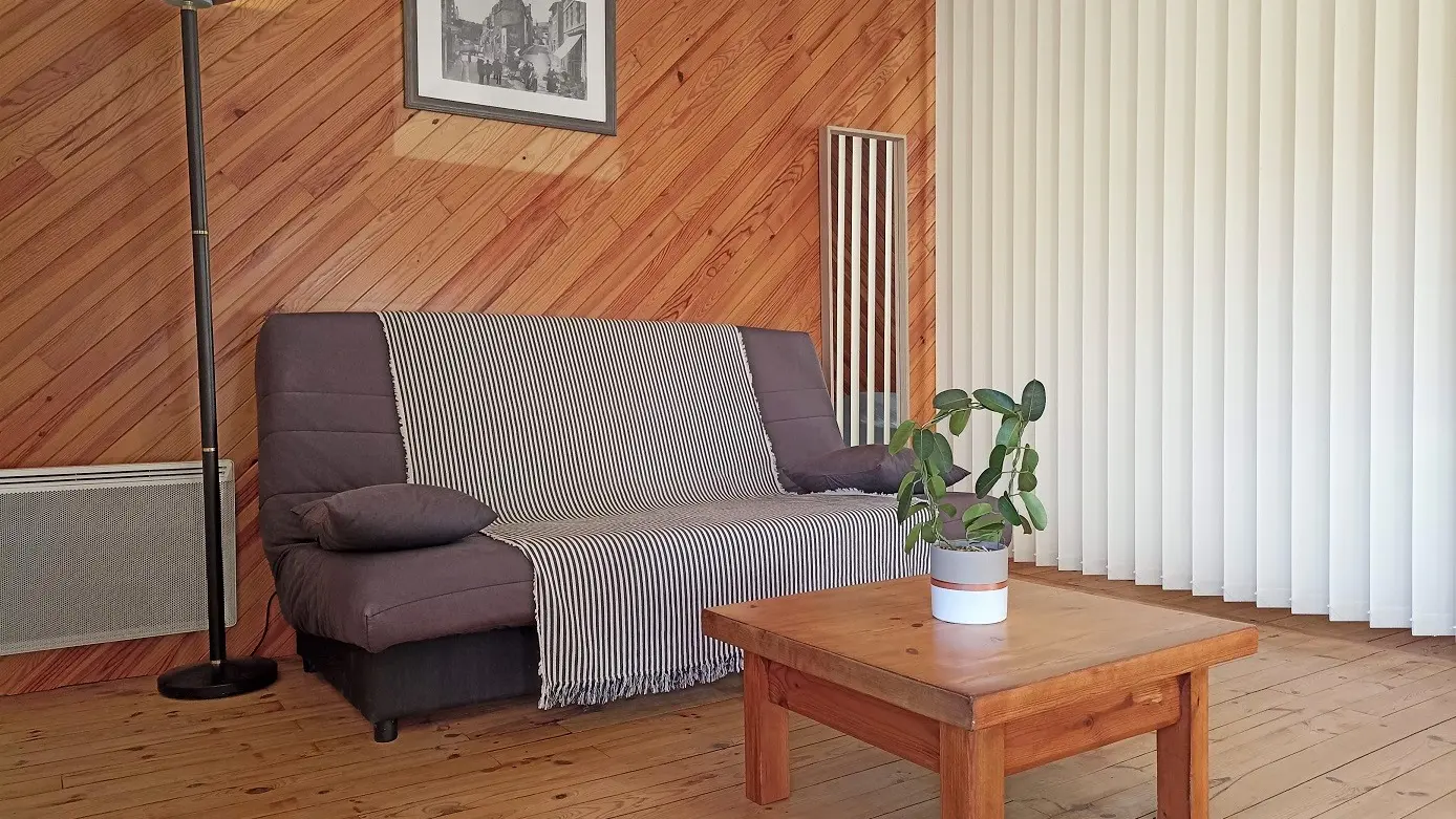 Dans une ambiance calme et apaisante, vous aurez le plaisir de découvrir son coin nuit avec son lit confortable (140x190), sa cuisine toute équipée (congélateur, four, micro-onde, plaque et lave-vaisselle), son séjour-salon doté d'un canapé convertible (140x190) et sa salle de bain avec baignoire d’angle.