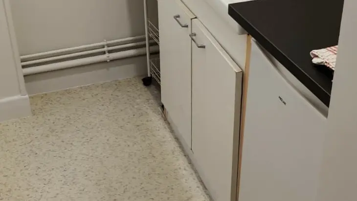 - une kitchenette séparée équipée avec réfrigérateur, four, plaques, ...