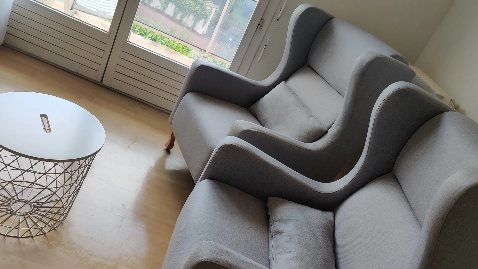 - une pièce de vie avec 2 lits en 90, un coin salon avec TV et un coin repas,
