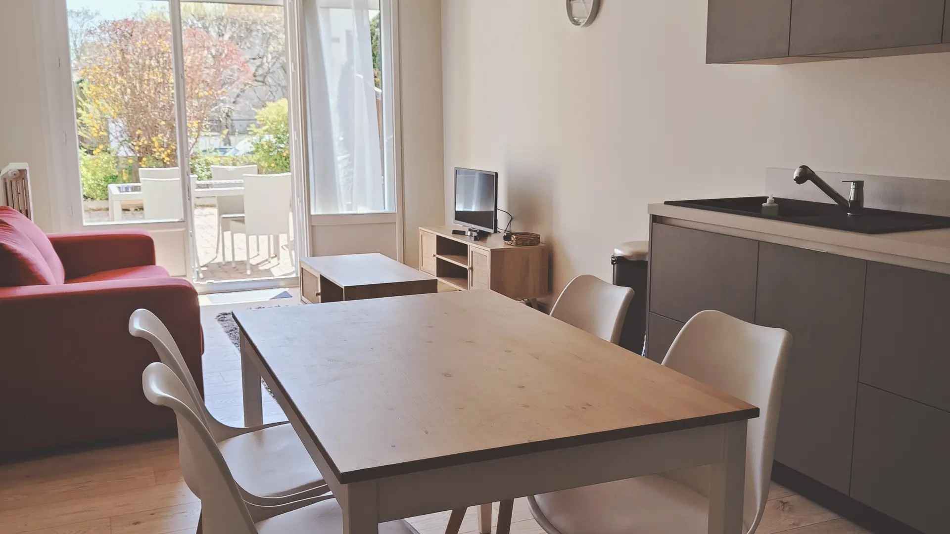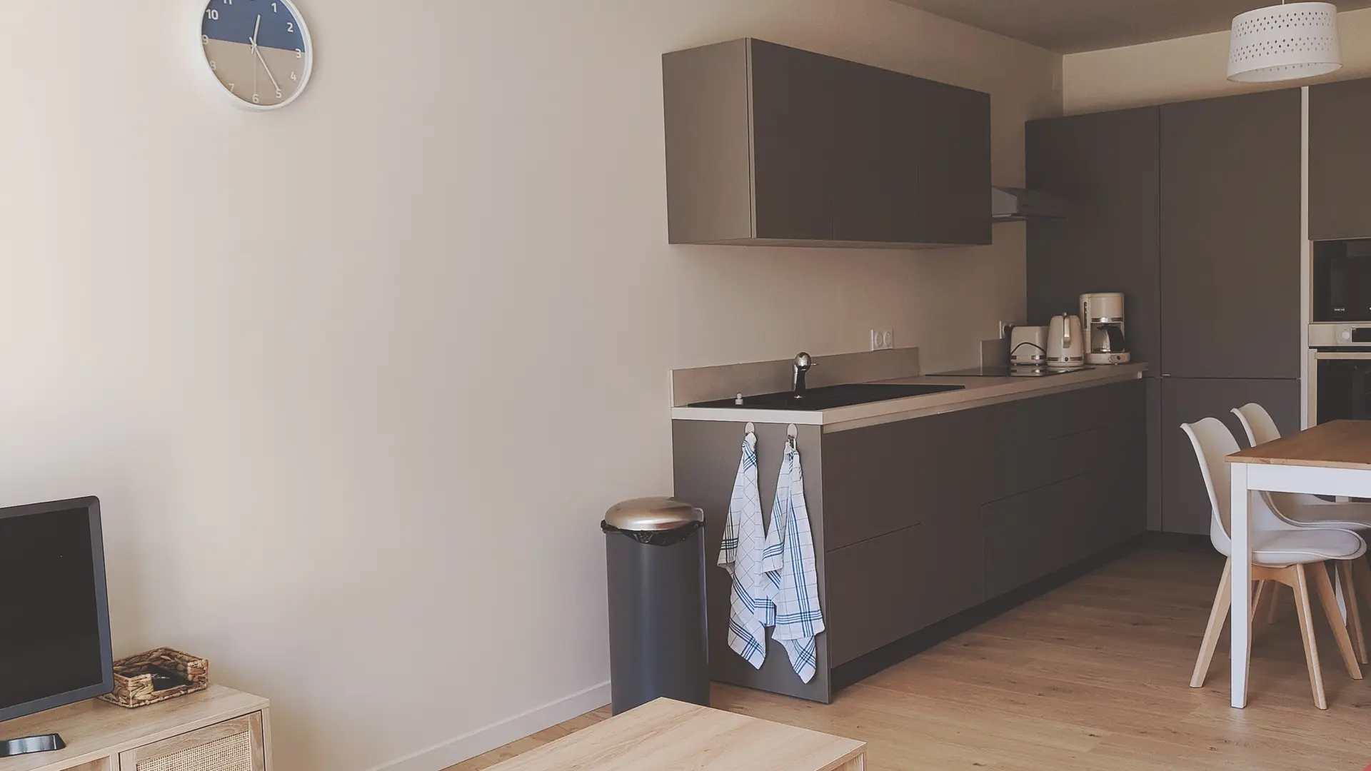L'appartement numéro 2 est un F1 bis au rez-de-chaussée qui a été entièrement rénové en 2023. Il peut accueillir jusqu'à 6 personnes et se compose de :