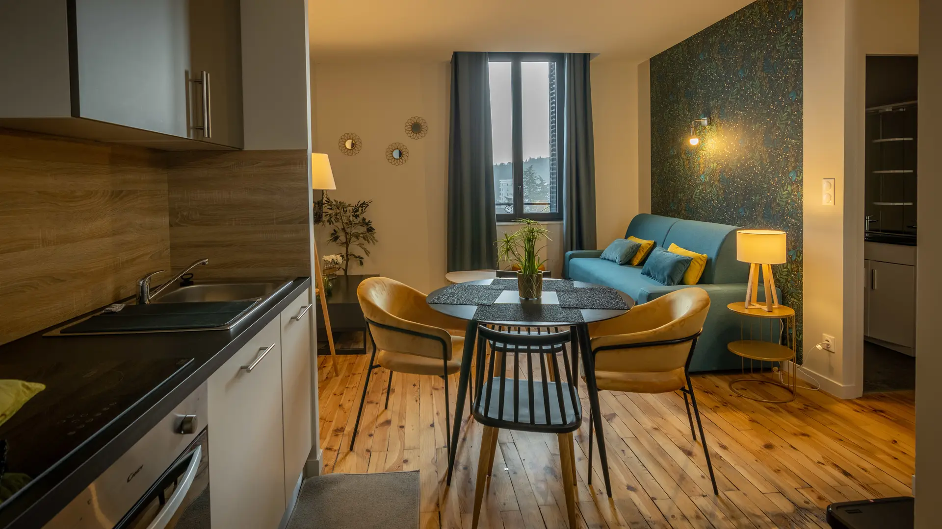 Au cœur des volcans d’Auvergne, venez-vous ressourcer dans un appartement entièrement rénové, confortable et chaleureux, à 3mn à pied du nouveau centre thermal. Soigneusement aménagés et climatisés, nos 16 logements sauront accueillir de 1 à 6 personnes.