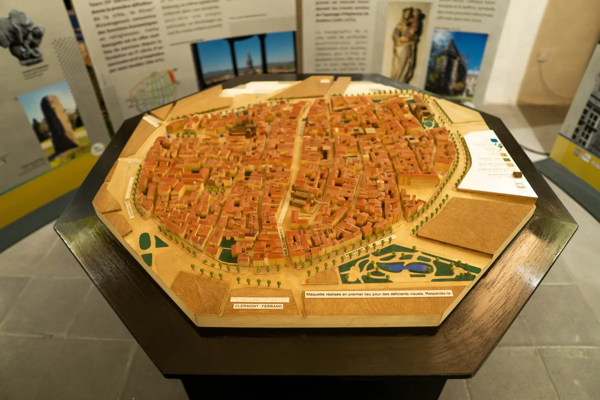 Découvrez l'histoire de la ville et de ses quartiers mais aussi celle du territoire du Pays d'art et d'histoire avant de profiter d'une vue imprenable sur le territoire Riom Limagne et Volcans et sur la Chaîne des Puys inscrite au patrimoine mondial de l'U.N.E.S.C.O..