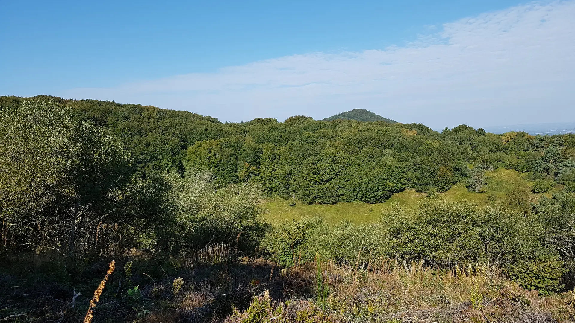 Point culminant de l’impluvium de Volvic (1 161 m), le puy de Jumes offre des panoramas exceptionnels sur la Chaîne des Puys et sur la partie ouest du bassin versant de Volvic (Pulvérières).