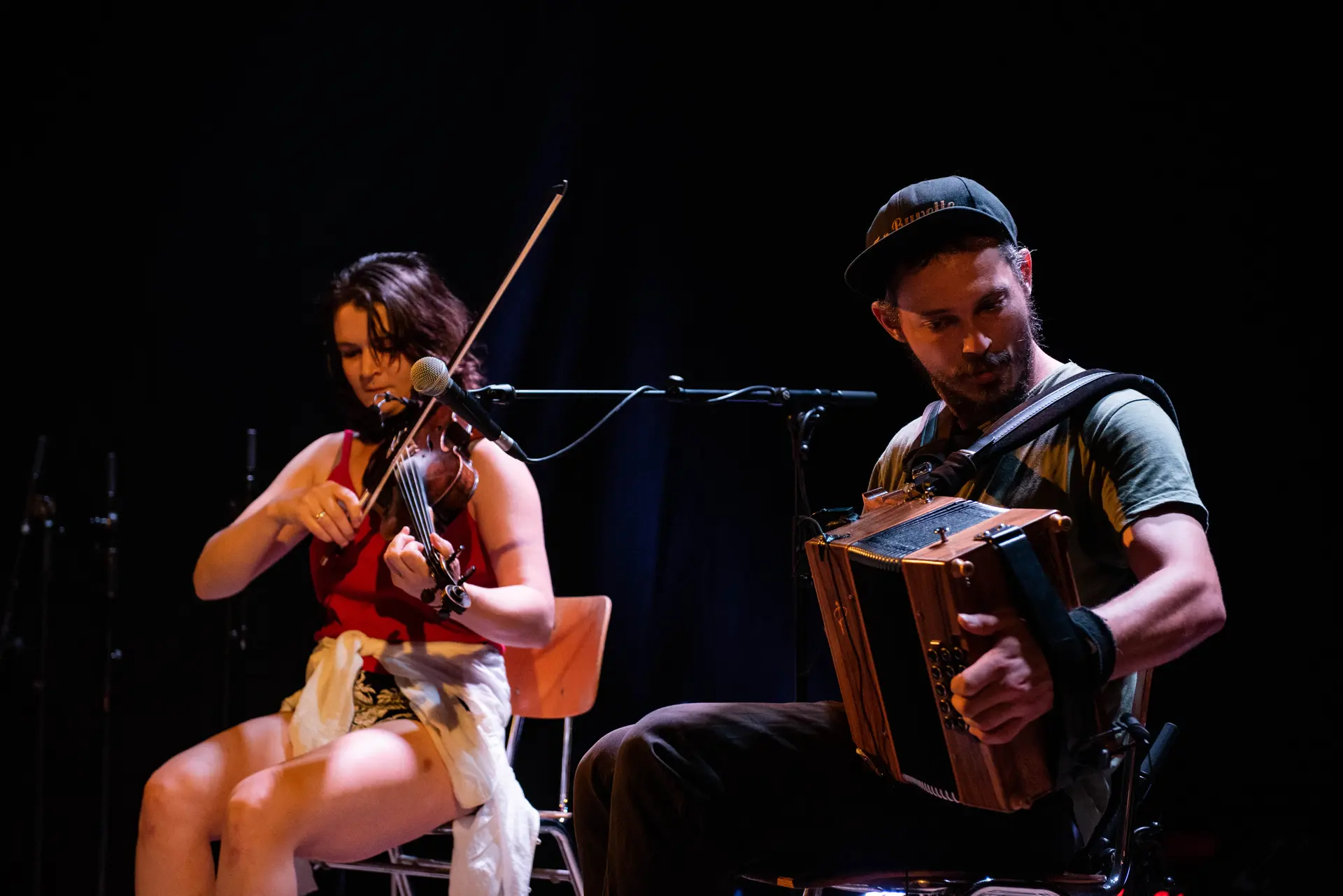 Le duo Tatane, ce sont deux paires de souliers rompus à la danse qui font trembler le plancher au rythme des répertoires du Massif Central. Cousu à la main, tanné par le soleil, usé par les routes et les parquets, le cuir se plie, se déplie et se déforme au son desmélodies, boucles et bourdons obstinés de l’accordéon et du violon.Eva Blickhan : Violon, piedsGilles Michaelidis : Accordéon diatonique, pieds