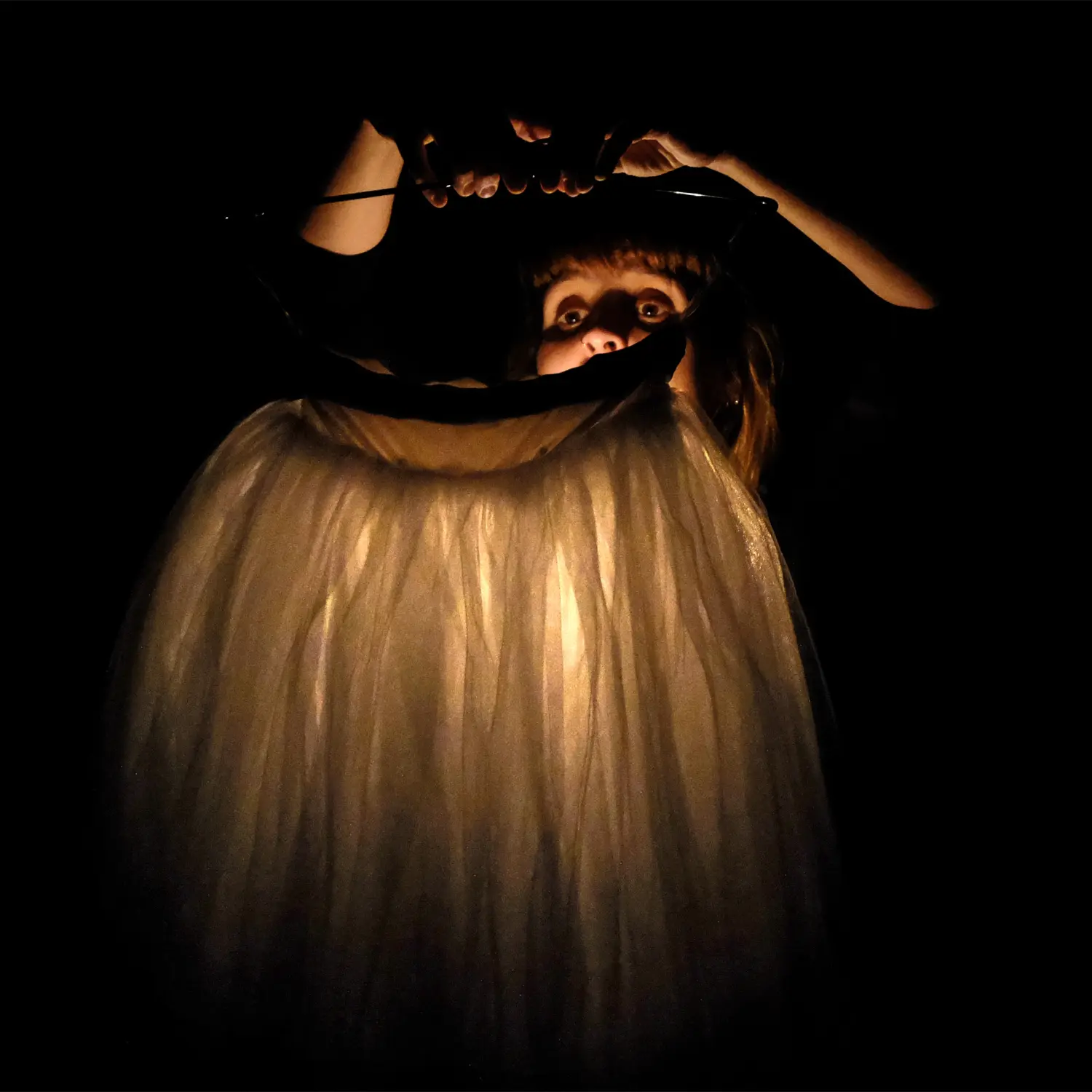 Elle improvise un récital enchanteur, célébrant son amour pour son métier à travers une performance sonore et chorégraphique, naviguant entre ombre et lumière.