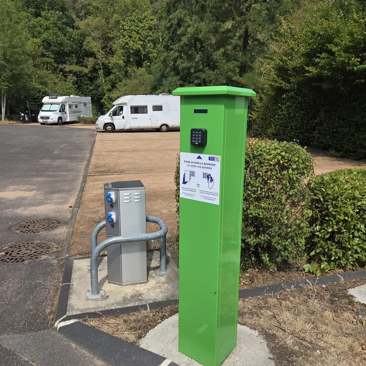 Située à l'entrée de la ville, proche des anciens établissements thermaux (thermes Henry) et du parc thermal, cette aire comporte 14 emplacements payants.