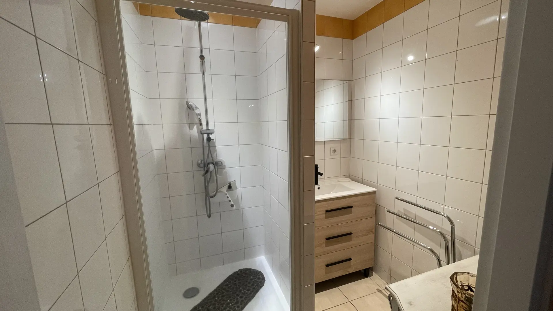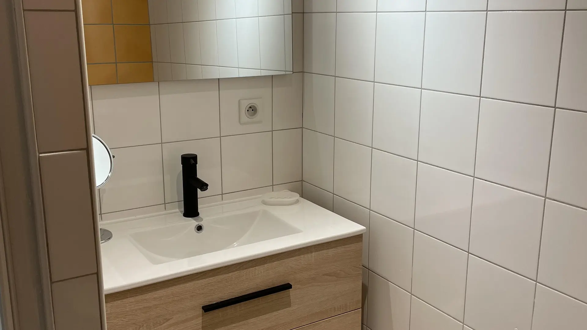 Il se compose d'une pièce principale avec 1 lit 2 personnes (160x200) fait à l'arrivée si location drap, d'une cuisine équipée réfrigérateur-congélateur, four, micro-onde, lave vaisselle et d'une salle d'eau. Lave linge et sèche linge. Télévision avec lecteur DVD, téléphone, Wifi. Parking privé sur demande.
