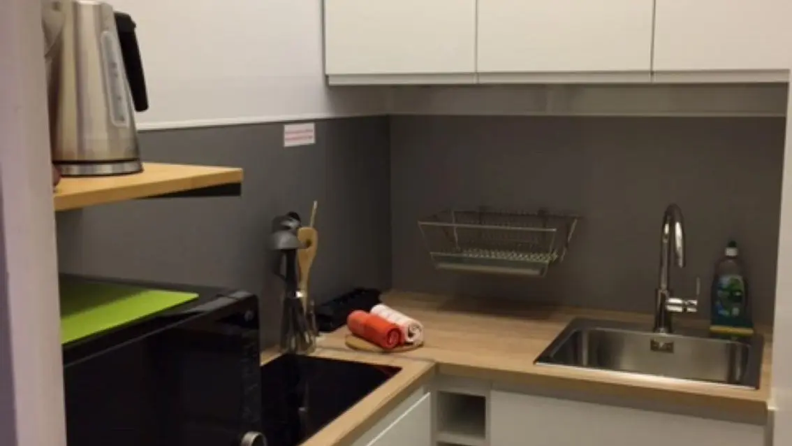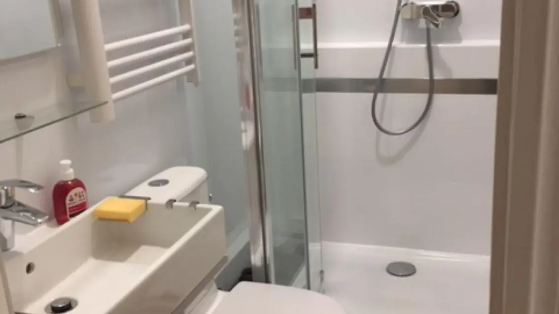 Il se compose d'une pièce principale avec lit double, d'un couloir d'entrée avec penderie d'une salle d'eau avec douche et toilettes , ainsi que d'une cuisine séparée par une porte fermée. Accès internet et WIFI gratuit.