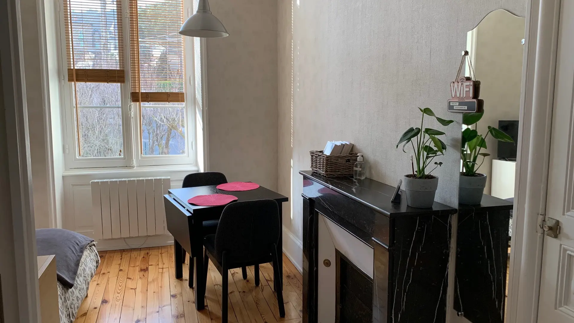 Studio chaleureux et confortable situé au 1er étage avec ascenseur, offrant le charme de l'ancien et la modernité des équipements, il sera votre compagnon idéal pour un séjour prolongé au coeur de l'Auvergne.