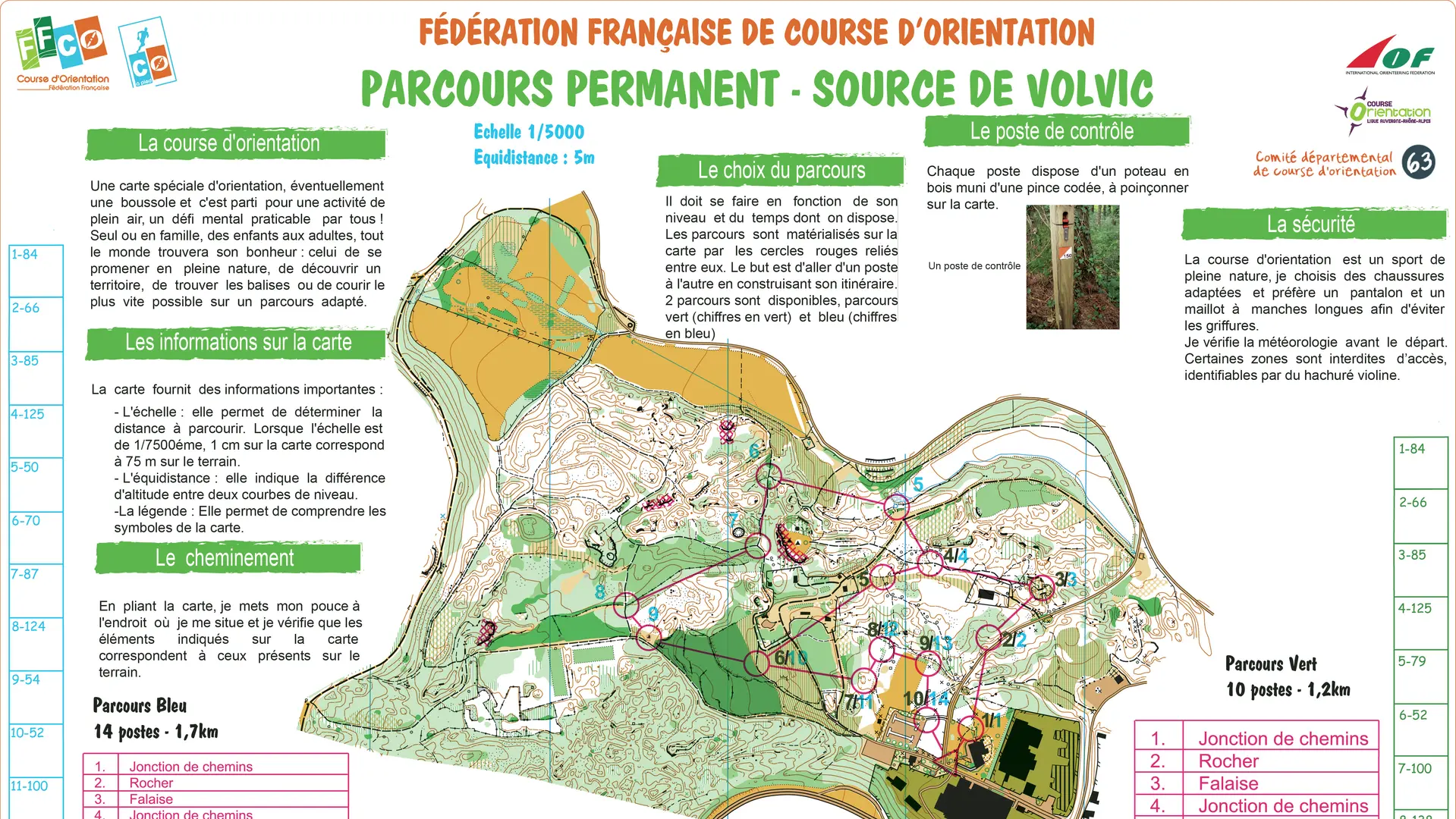 - 2 parcours d'initiation à la course d'orientation, accessibles à tous. Cartes disponibles à Volvic O'rigines et à l'Office de Tourisme Terra Volcana (Comité Départemental 63 de course d’orientation : 06 82 31 21 62).